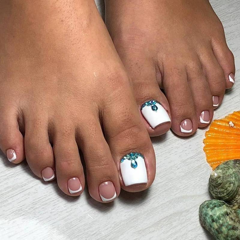 Летний маникюр и педикюр со стразами может быть выполнен на матовой и глянцевой основе. Стразы смогут дополнить не только технику френч, но и украшать нейл-арт с градиентом, цветочный дизайн ногтей, а также маникюр и педикюр в сложном дизайне, где сочетаются сразу же несколько техник.
