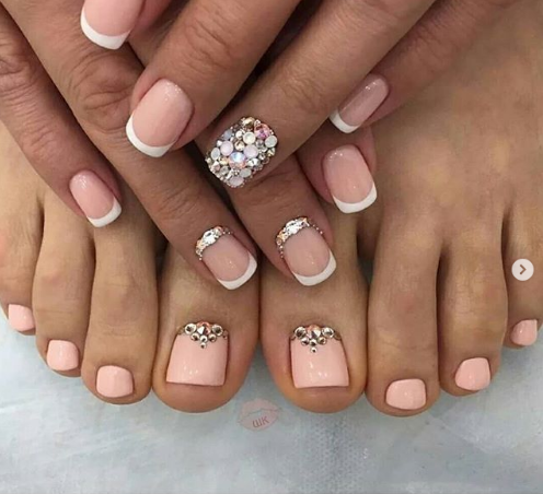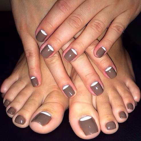 Еще одно популярное и довольно-таки простое решение для одинакового маникюра и педикюра – френч.