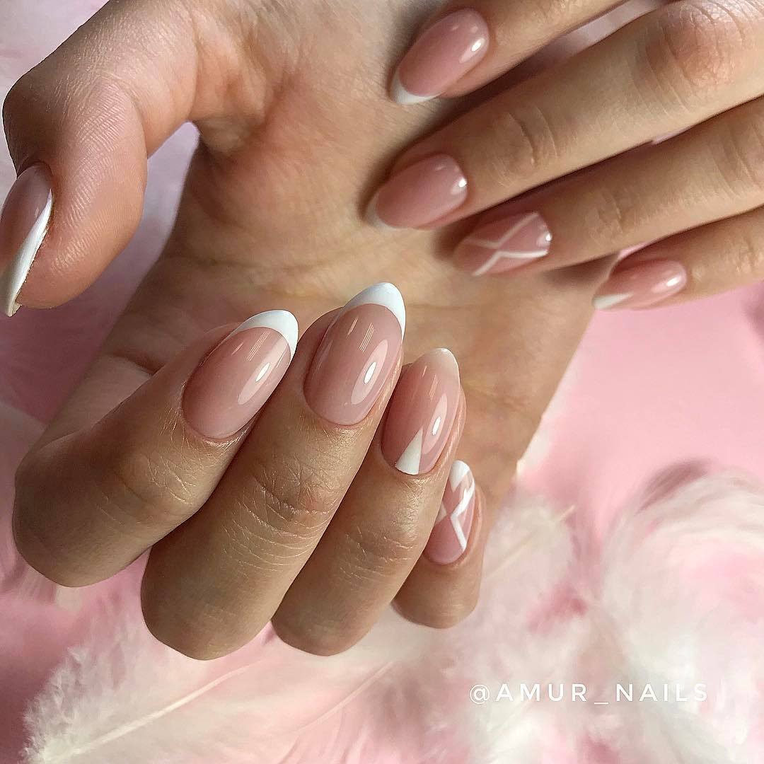 А еще лунный маникюр отлично смотрится вместе с френчем, и это сочетание также комбинируется как на руках, так и на ногах!
