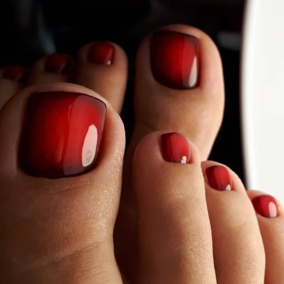 Педикюр в темно-красных и бордовых тонах — вариант, который НИКОГДА не подводит, поэтому, если сомневаетесь, идите по этому пути.