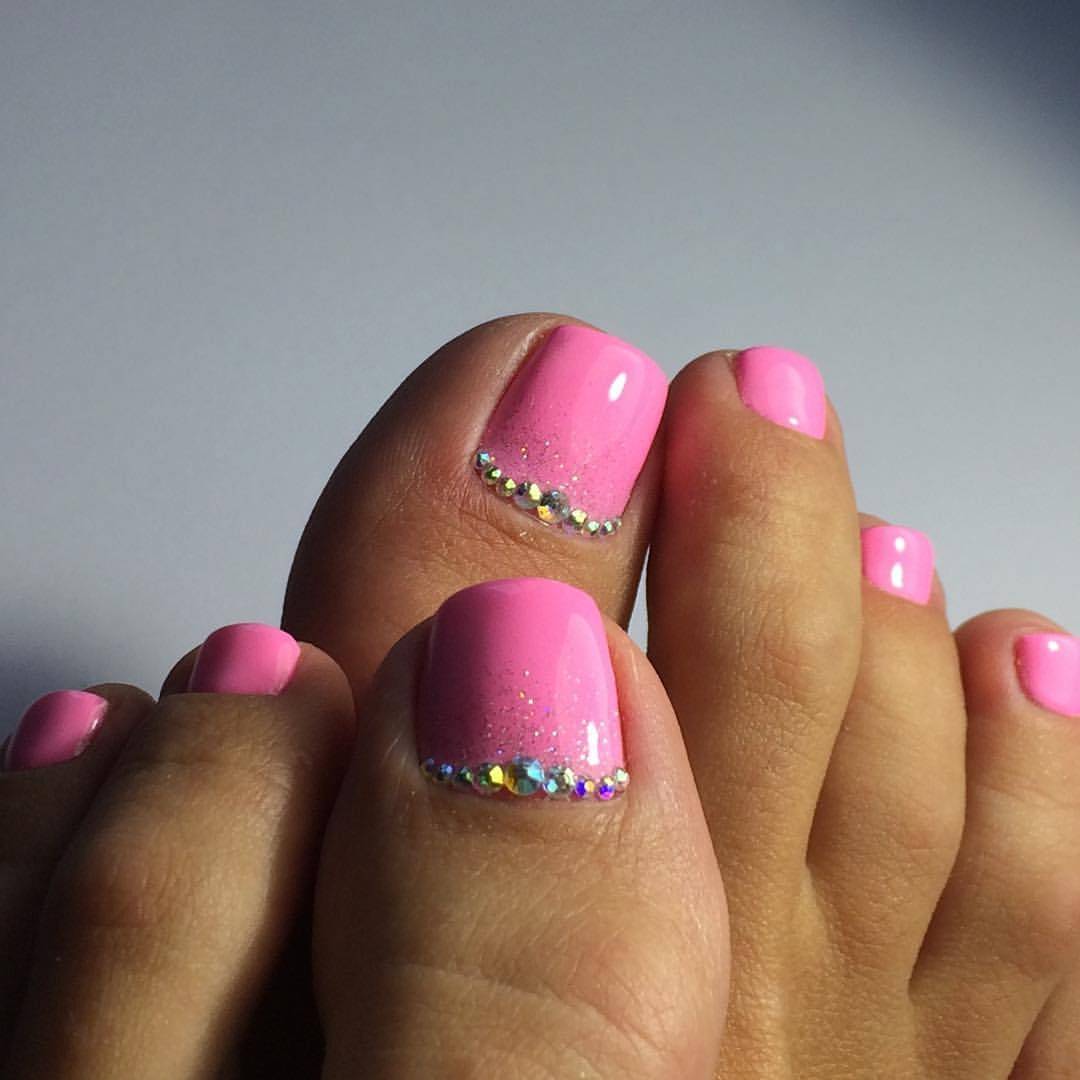 Их можно располагать как на весь ноготь, так и по одной стразинке на каждом, или даже выложить в узор. Но имейте ввиду, что закреплять их нужно железобетонно, если не хотите потерять из-за обуви!