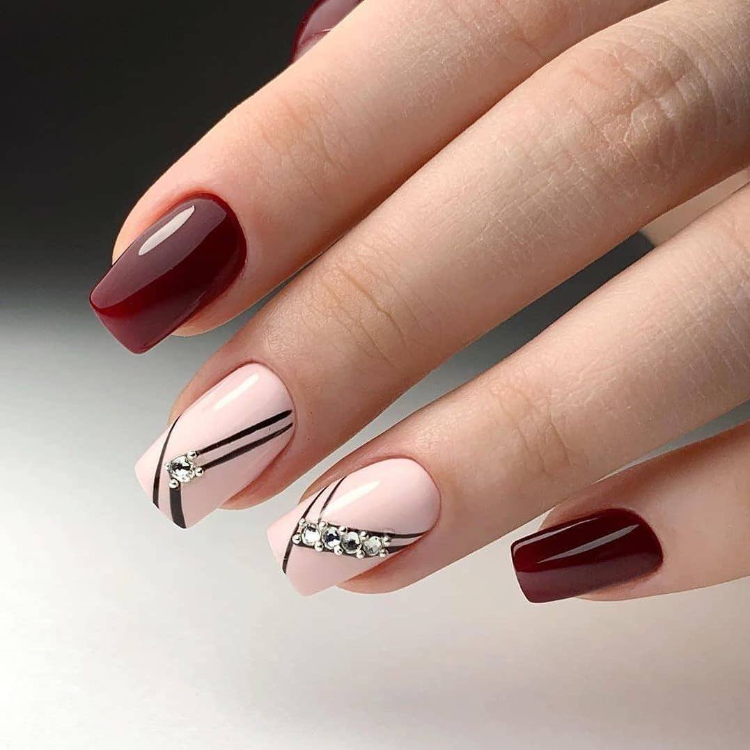 - бордовый – яркое и неординарное решение для офисного маникюра, смотрится очень выразительно и заметно