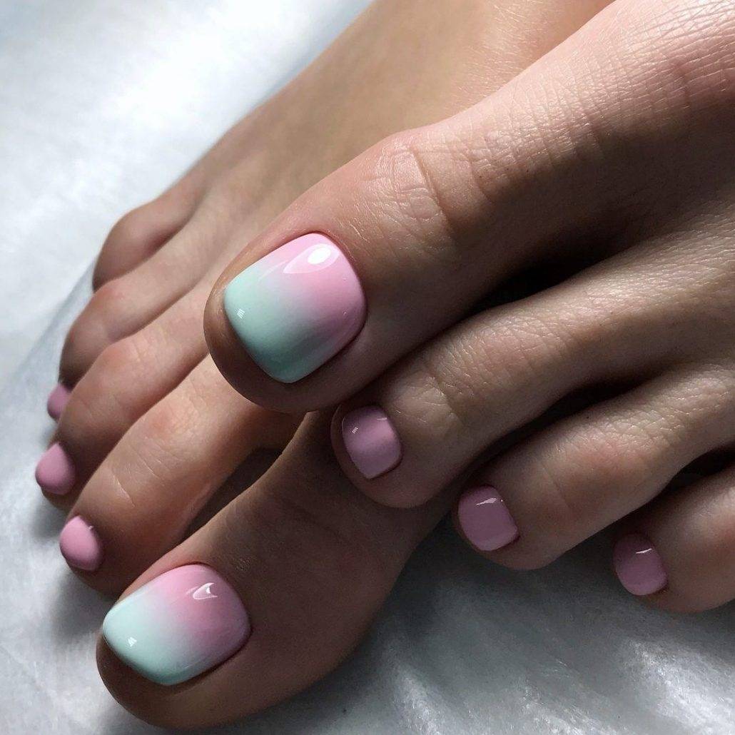 - Дизайн, который не подходит для ног – это омбре или градиент на ногтях, так как выполнить его на таком маленьком участке с красивыми плавными переходами практически нереально! Поэтому и для парного к маникюру я его не рекомендовала бы. Если сильно хочется, то к омбре на руках можно окрасить в такую же гамму ногти на ногах, чередуя цвета.