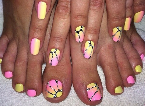 Летний маникюр и педикюр – сочетания разных техник дизайна ногтей