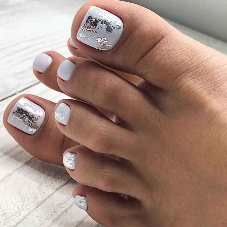 Педикюр с фольгой это один из самых интересных вариантов. Эффектное цветовое сочетание лака и золотой или серебряной фольги делают ноготки красивыми и заметными.
