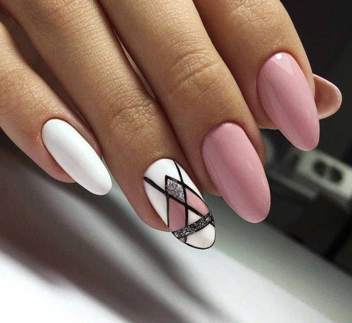 - розовый – выглядит ярче и нежнее, чем серый маникюр. Может быть использован вместе с золотым или серебряным глиттером.