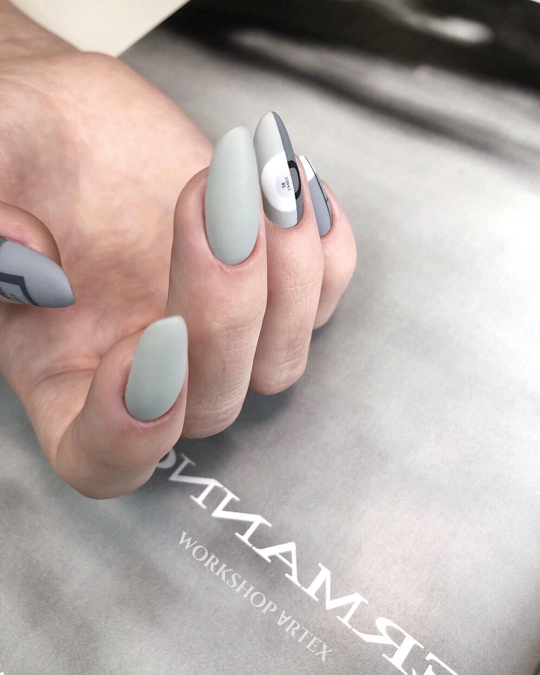 - серый – классический вариант для мраморного маникюра, который отлично впишется в ваш офисный стиль