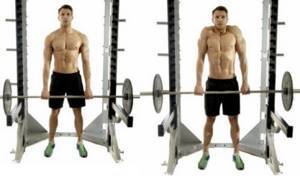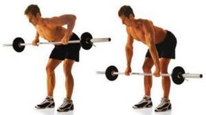 | Тяга штанги в наклоне | Трапециевидные, ромбовидные и широчайшие | 3 | 10-12 |