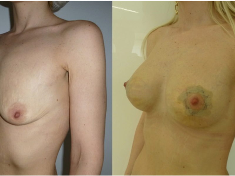 | Плюсами такой операции является не только хорошая форма груди, но также увеличение ее объема. Грудь после увеличения с подтяжкой за счет имплантатов имеет хорошо наполненный верхний полюс и большую упругость. |