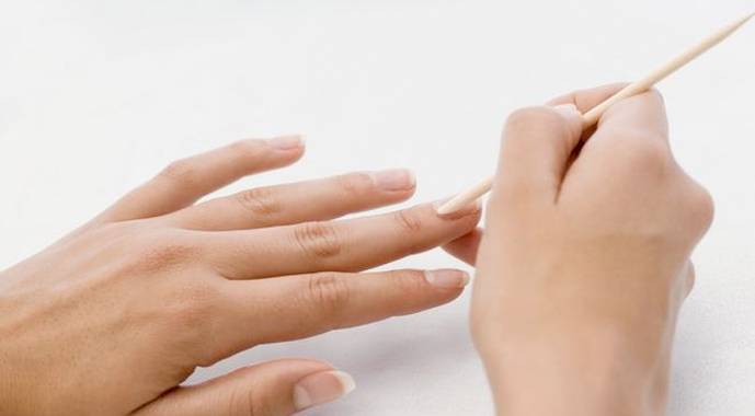 Перед тем как приступать к нанесению простого узора на ногтях, нужно подготовить поверхность. Обработайте кутикулу размягчителем или подержите руки в теплой воде в течение 10-15 мин. За это время кутикула размягчится, ее можно будет легко отодвинуть и обрезать. Очистите руки обезжиривателем.