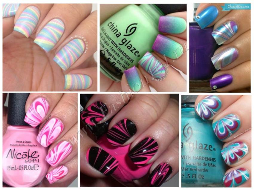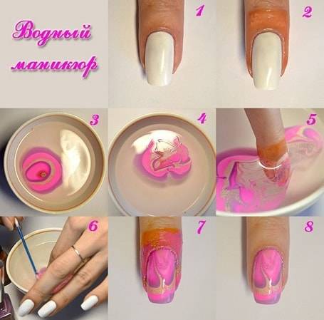 - Водный маникюр, какими лаками пользоваться? Для работы необходимо подбирать жидкой консистенции — лучше всего растекаются по поверхности жидкости.