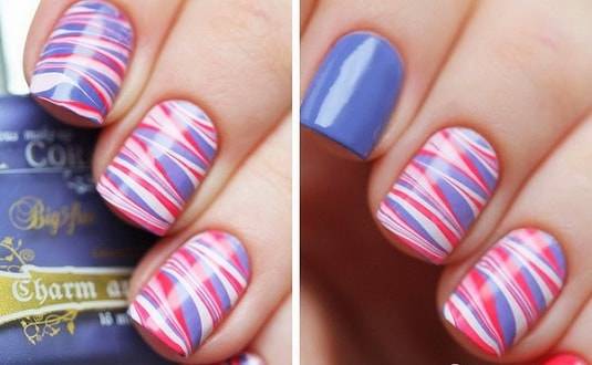 В то же время необходимо отказаться от быстросохнущих лаков, ведь те слишком быстро застынут плёнкой на воде, из них не получится сформировать нужный узор, и, тем более, закрепить его на ногтях.