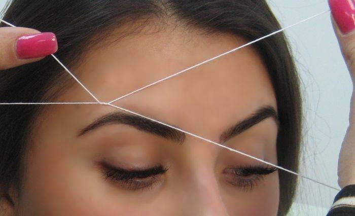 - Преимущество перед выщипыванием пинцетом. Острые кончики пинцета часто просто перекусывают волоски, в то время, как нить выдергивает их с корнем.
