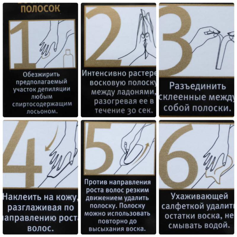 Процедура депиляции восковыми полосками состоит из следующих этапов: