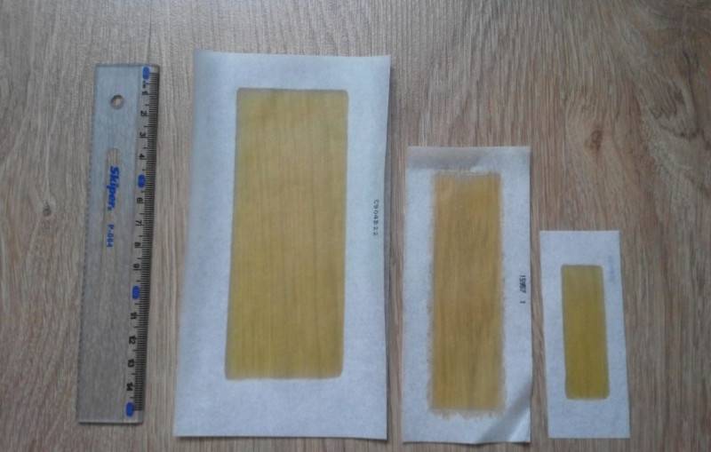- Из упаковки достают все необходимое. Полосы для удобства разрезают на две части поперек или вдоль, стараясь подогнать размеры под необходимые участки кожи. За счет этого удастся сократить болевые ощущения.