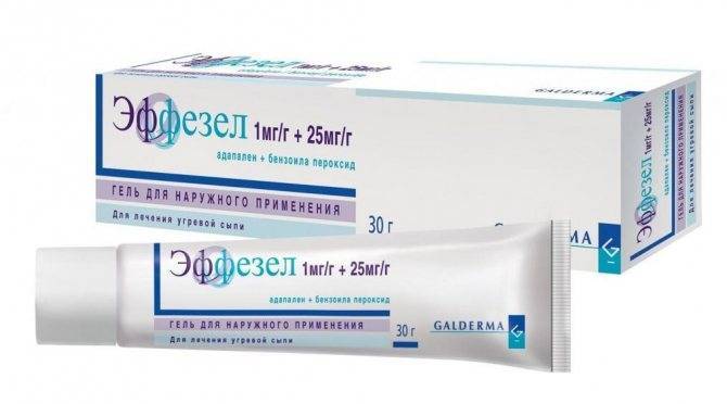 На первое место рейтинга попал Эффезел. Это комбинированный французский препарат, содержащий адапален с бензоила пероксидом. Он подходит для лечения угревой сыпи с комедонами (включая черные точки), папулами, пустулами. У препарата выраженный себостатический эффект — он предупреждает избыточное продуцирование кожного сала.