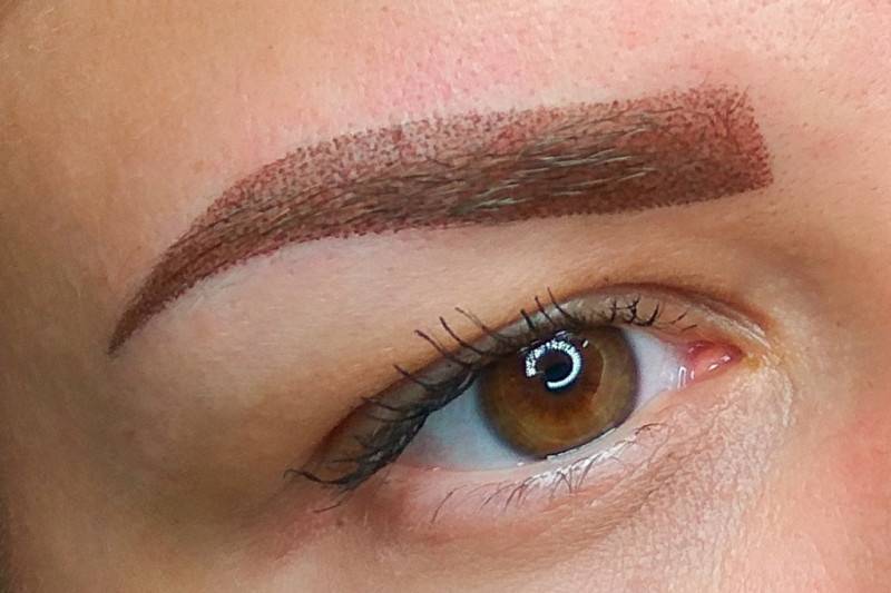 Эта техника также называется «напыление», поскольку эффект очень нежный и аккуратный. Краска вбивается только в верхний слой кожи, там растушевывается. Результат можно достичь за час, при этом эффект держится порядка трех лет, до этого коррекция не требуется.