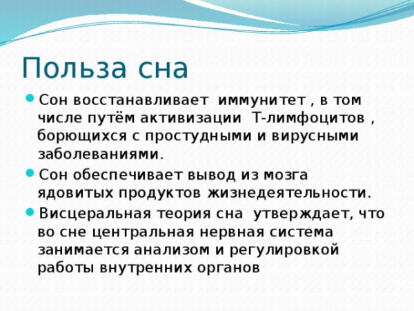 Старайтесь в это время быть уже в постели, чтобы организм успел обновиться и отдохнуть за ночь. Не зря сон до 24:00 называют «сном красоты». Спать надо от 6 до 8-ми часов.