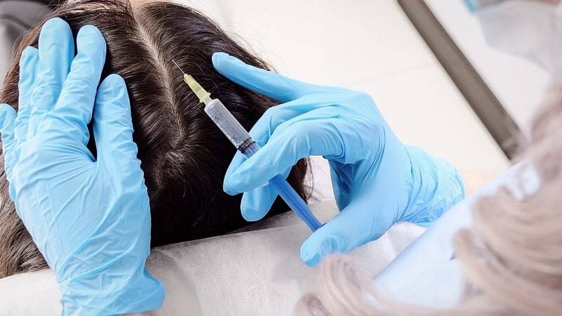 Косметолог делает в кожу головы инъекции, которые обогащают эпидермис кислородом и различными питательными веществами.