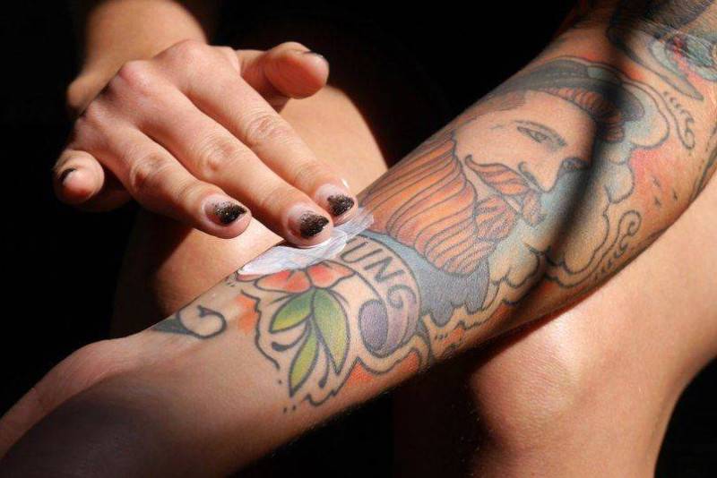 Бывает, что тату закрывают обычным бинтом. Его необходимо снять как можно раньше, чтобы он не присыхал к коже