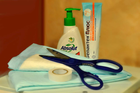 - сделайте повязку из подгузника, которую закрепите скотчем или пленкой.
