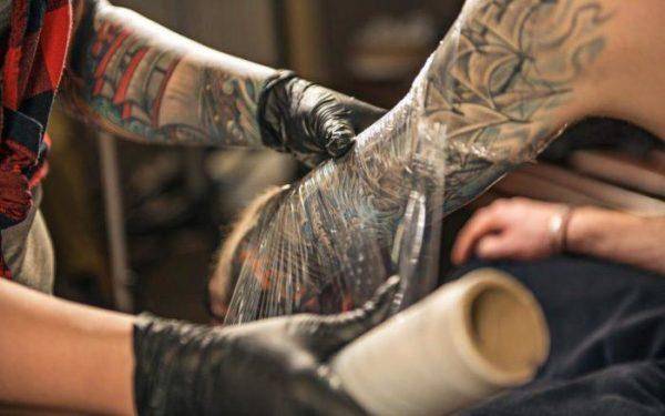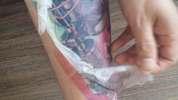 Бывает, что тату закрывают обычным бинтом. Его необходимо снять как можно раньше, чтобы он не присыхал к коже