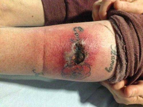 Промывка раны и смена компресса, проводится примерно 3-5 раз в день, на протяжении одной — двух недель, в зависимости от того как быстро будет проходить заживление.