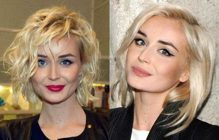 Сделать каре, как у Полины Гагариной, рекомендуется барышням с круглым лицом. Прическа отличается приподнятой прикорневой областью, боковым пробором, отсутствием четких, графичных линий. Укладка выделяет черты лица, придает им правильные пропорции. Возможно сочетать с крупными фактурными завитками или мягкими волнами.