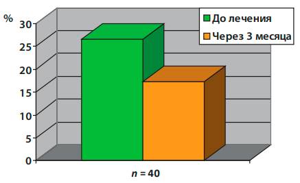 Критерии включения. В исследование было включено 40 пациентов (20 мужчин и 20 женщин) в возрасте 18– 45 лет с жалобами на повышенное выпадение волос продолжительностью более 3 мес и диагностированным по фототрихограмме процентом количества волос в стадии телогена более 15%. Сочетание диффузного выпадения волос и андрогенетической алопеции не являлось критерием для исключения из исследования.