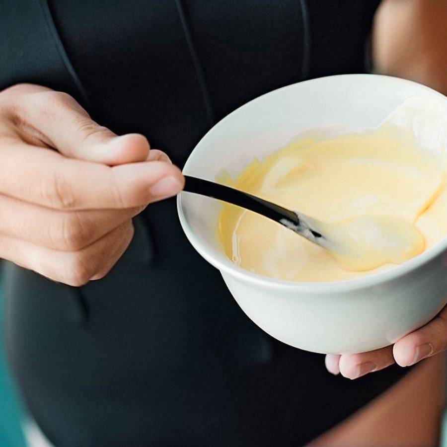 - Измельченная мякоть авокадо, яичный желток, оливковое масло (2 ст. л.).