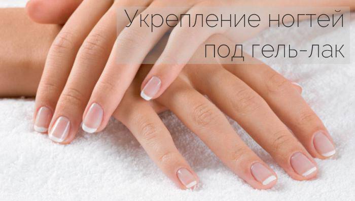 Укрепление гелем натуральных ногтей схоже с процедурой наращивания. Необходима подготовка ногтей: шлифовка и обезжиривание. После нужно нанести в 2 слоя гель, тщательно просушивая каждый раз. По окончанию придать мягкой пилкой ровную форму краям.