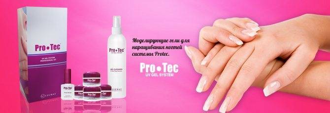 Protec – это белорусский бренд, продукция у него натуральная. Комплект используют для домашнего моделирования пластины, формирования длинные, формы ногтя. Сушить моделирующие средства для наращивания нужно в лед лампе с холодным свечением.