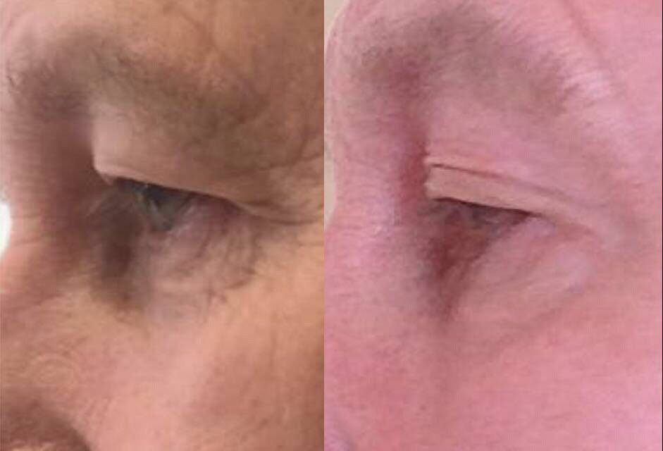 - Опущение бровей и нависание верхнего века: с помощью аппарата можно провести подтяжку верхних век, что является альтернативой блефаропластике, а также эффективно устраняет «гусиные» лапки