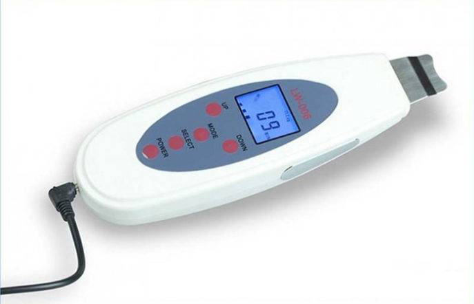 Ультразвуковое устройство для чистки лица представляет собой аппарат, габариты которого позволяют ему легко помещаться в руке. На его корпусе расположены кнопки управления, которые позволяют вручную настраивать мощность ультразвука. Вес у прибора небольшой, поэтому при проведении процедуры руки не устают.