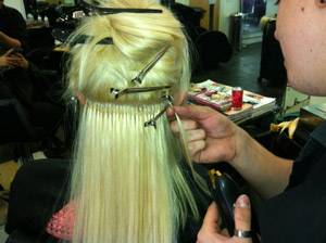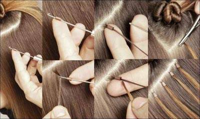 Процедура наращивания производится на предварительно вымытых обезжиривающим шампунем и высушенных волосах. Для этого мастер делает горизонтальный пробор, вдоль которого он постепенно отделяет небольшие пряди. К каждой из них прикладывается донорский локон. После этого место крепления зажимается ультазвуковым инструментом, который размягчает клеевой состав, обеспечивая его сцепление с родными волосами. Затем мастер с помощью специальных щипцов формирует плоское аккуратное крепление.