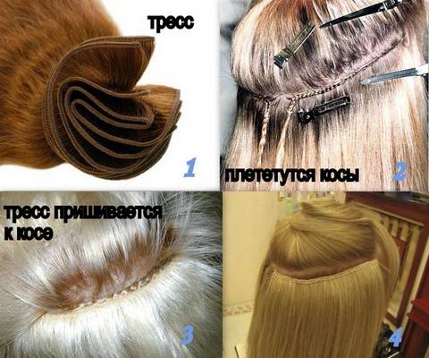 Основана на косах. Вокруг головы заплетается тонкая коса — это основа для крепления искусственных прядей. Затем с помощью длинной кривой иглы пряди как бы «пришиваются» к основе. Таких кос-основ может быть несколько. Пряди в этом виде наращивания также необычны как и сама технология — это трессы (тонкая прядь волос, к которой с двух сторон пришита ткань). Места соединений не заметны, так как трессы сверху прикрываются собственными волосами. С готовым наращиванием можно делать почти всё, что и с обычной стрижкой: красить, тонировать, мыть шампунями, делать маски и т.д.