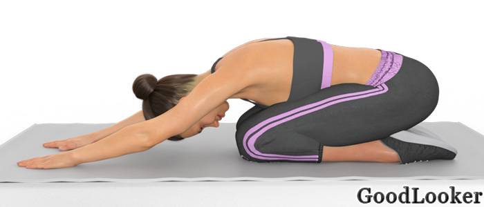 Исходное положение: лежа на полу на животе, лбом упереться в ладони рук.