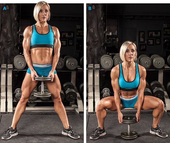 | 1. ПРИСЕДАНИЯ ПЛИЕ С ГАНТЕЛЬЮ 3 подхода по 12-15 повторений | |