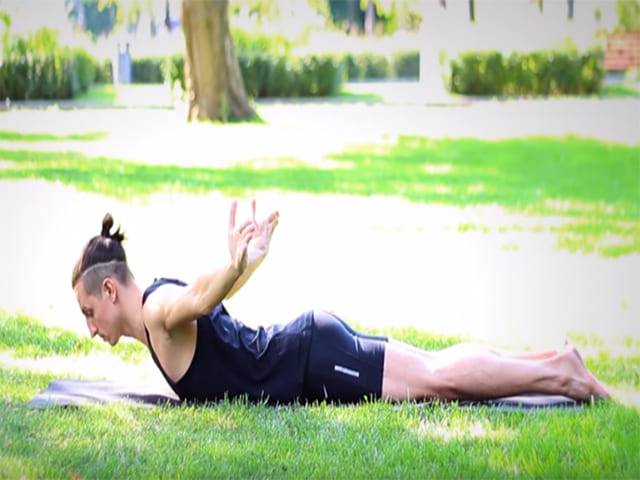 - Принимаем позу из йоги «виманасана», иначе «Супермен».