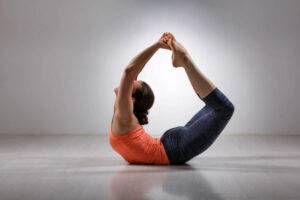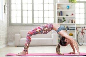 - Мостик. Сначала следует принять позу ягодичного мостика, а затем медленно опереться руками в пол и поднять ягодицы ещё выше. При этом руки должны находиться недалеко от пяток.