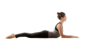 Лягте животом на пол, затем поднимите корпус и упритесь в пол предплечьями. Движение осуществляется за счет прогиба в позвоночнике, почувствуйте напряжение в спине.