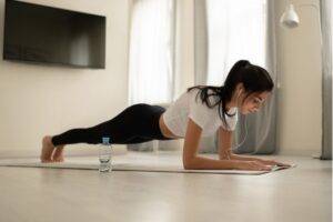 В течение дня рекомендуется выполнить укрепляющий комплекс упражнений для осанки в домашних условиях. Для этого понадобится 2 кв. м. пространства, коврик или полотенце.