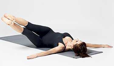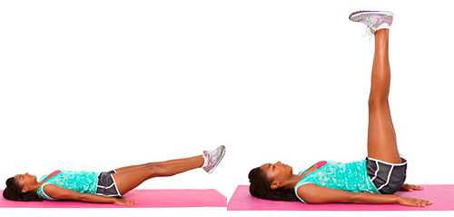 - Сомкните ноги вместе, а затем поднимите их максимально высоко. Для акцента на косых мышцах вы также можете приподнять корпус.