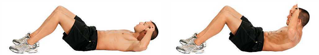 Ложатся на ровную поверхность. Выпрямляют ноги. Руку кладут под голову. Из исходного положения одновременно поднимают и колено, и корпус таким образом, чтобы они соприкоснулись. Возвращаются в начальную позицию и меняют руку.