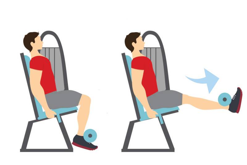 Изолирующее упражнение для прокачки передней поверхности бедер (квадрицепсов). При выполнении необходимо следить за тем, чтобы спина оставалась прямой — а пресс был в легком осознанном напряении.