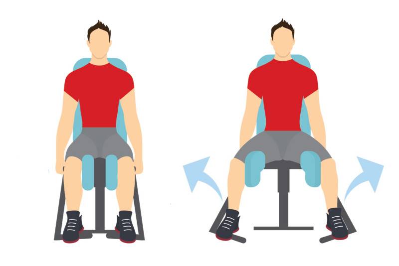 - Разведения ног сидя — 2-3 подхода по 10-12 повторений