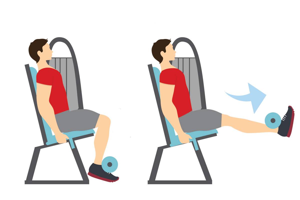 Изолирующее упражнение для прокачки передней поверхности бедер (квадрицепсов). При выполнении необходимо следить за тем, чтобы спина оставалась прямой — а пресс был в легком осознанном напряении.