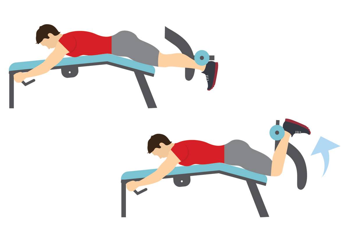Изолирующее упражнение для тренировки задней поверхности бедер и нижней части ягодиц. Новичкам рекомендуется начинать с небольшого веса — выполняя упражнение поочередно каждой ногой и добиваясь максимального вовлечения мышц в работу.