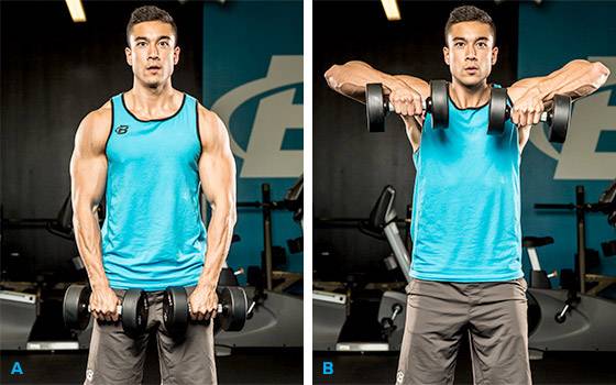 При этом помните о том, что разведения и махи гантелей подходят исключительно атлетам с продвинутым уровнем подготовки. Новичкам подобные упражнения наносят больше вреда, чем пользы — нарастить массу плеч подобные упражнения не помогут, но создадут риск травмы.