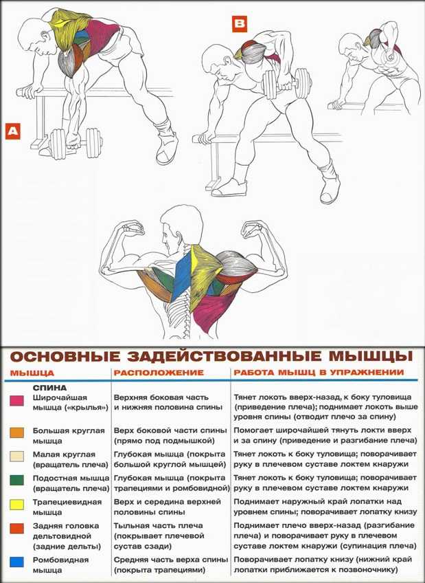 По сути, это то же самое упражнение, которое так же включает в работу широчайшие мышцы спины, только выполняется каждой рукой поочередно, что позволяет более концентрировано проработать каждую сторону. Обычно, такое движение выполняется с упором в стул или скамью, чтобы выключить из работы поясничные мышцы.